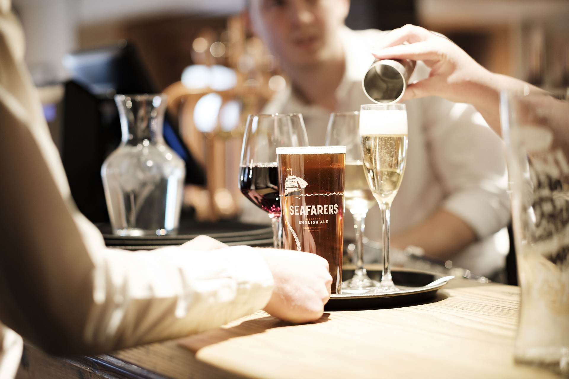 Unwind at the bar, which is well-stocked with an eclectic range of drinks to quench your thirst, including Fuller’s award-winning real ales, craft beers, premium lagers, ciders, and an extensive wine list with a variety of choice from around the world. Gin and tonic lovers and those seeking out tasty, fresh cocktails, or alcohol-free alternatives are well catered for.